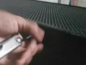 Поврежденный динамик нужно открутить от корпуса. Затем, когда он будет откручен, осторожно приподнимите его, но не слишком высоко, так как он подключен к усилителю. Аккуратно отключите кабели от динамика и положите динамик на стол.