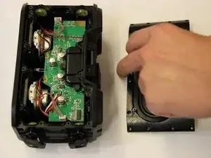 Аккуратно снимите повреждённую пластину сабвуфера с устройства. Установите работоспособную пластину сабвуфера.
