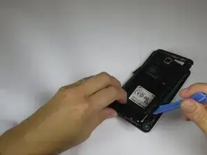 Начиная сверху, вставьте пластиковую отвёртку в зазор между корпусом аккумулятора и основным корпусом устройства.