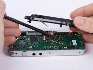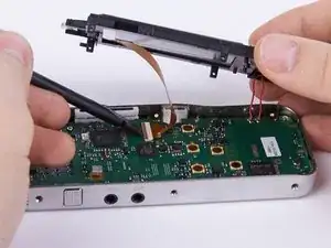 Разблокируйте соединение между дисплеем и материнской платой, открыв коричневый зажим.