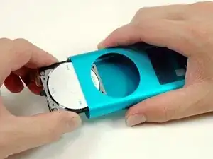 Аккуратно выдвиньте iPod из его корпуса, надавливая на материнскую плату вблизи нижнего края клик-колеса.