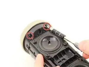 Выкрутите четыре винта длиной 13 мм типа JIS #0, крепящие резиновый каркас к корпусу динамика; они расположены по обеим сторонам внутренней части колонки.