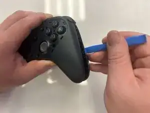 Аккуратно подденьте по шву, разделяющему половины корпуса контроллера, используя инструмент для вскрытия.