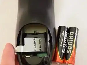 Извлеките батареи, используя серебристый язычок.