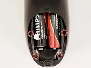 С помощью отвертки Philips J000 открутите четыре винта по 5 мм вокруг края батарейного отсека.