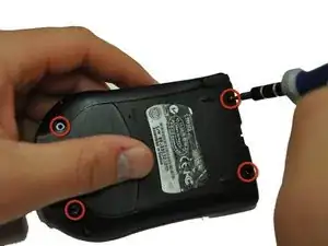 С помощью отвертки Torx T-5 отвинтите все четыре винта на задней панели устройства, поворачивая против часовой стрелки. Пример отвертки показан здесь.
