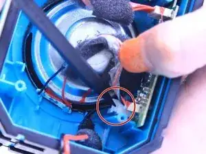 Осторожно отделите аккумулятор от клея, фиксирующего его к внутренней стенке динамика.