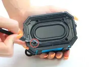 Осторожно вставьте лопатку в одно из отверстий крышки, чтобы поддеть и открыть внешнюю крышку динамика.