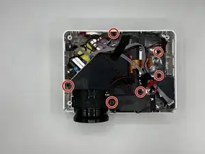 Снимите все шесть винтов по 11 мм на основании проектора с помощью отвертки Phillips #1.