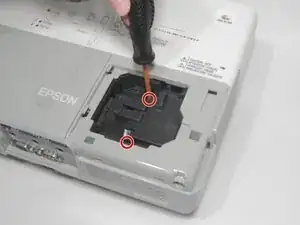 Ослабьте два фиксированных винта, которые удерживают лампу, с помощью отвертки Phillips #2.
