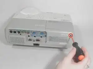 Ослабьте единственный фиксированный винт, удерживающий крышку лампы, с помощью отвертки Phillips #2.