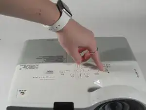 Нажмите кнопку питания, расположенную на верхней панели проектора.