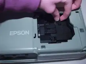 Удерживайте захват и прямо потяните его из проектора.