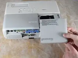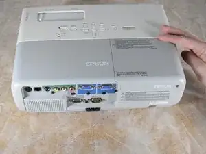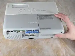 Когда крышка освободится, снимите ее прямо вверх с проектора, чтобы открыть доступ к лампе.