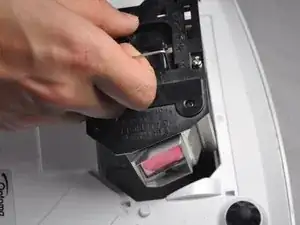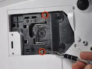 Используйте отвертку Phillips #1, чтобы ослабить два винта, удерживающие черный корпус.