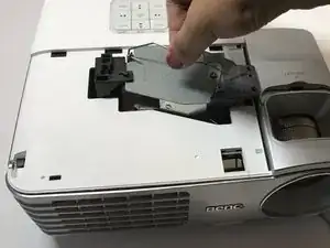 Извлеките лампу из проектора, потянув за ручку лампы.