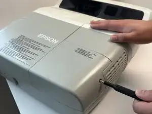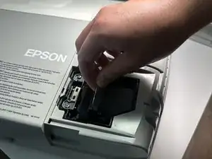 Когда винт больше не будет затянут, снимите крышку, сдвинув ее вправо от устройства. Это откроет доступ к лампе.