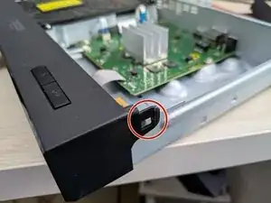 Наденьте переднюю часть корпуса поверх открытого лотка привода.