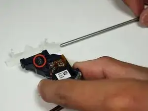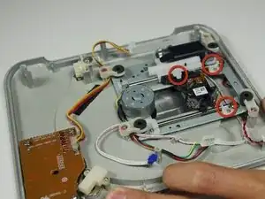 Удалите один винт диаметром 4 мм, окруженный красным, с помощью отвертки Phillips #1.