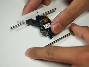 Используя два пластиковых инструмента, поднимите две направляющие под углом. Держите стержни под углом, как показано.