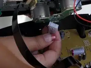 Отсоедините толстый бело-розовый кабель под чёрной верхней крышкой, потянув вниз.