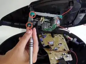 Используя крестовую отвертку №0, удалите два 11-мм винта, прикреплённые к зелёным ножкам под верхней панелью.