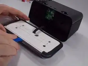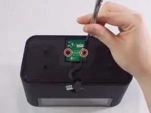 Удалите два винта Philips #0 размером 1,7 мм, удерживающие белую накладку внутри нижней части устройства.