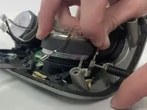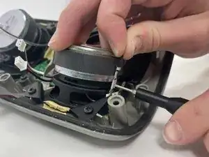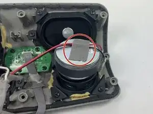 Удалите скотч, фиксирующий два провода, подключенные к динамику.