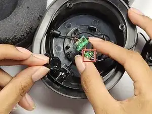 Хотя это руководство демонстрирует, как заменить левый драйвер, провода правого динамика также припаяны к этой плате. При замене правого драйвера распаяйте разъемы, помеченные RG и R+.