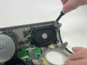 Используйте крестовую отвёртку Phillips #1, чтобы вывернуть четыре винта длиной 9.5 мм, крепящие динамик.