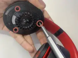 Используйте отвертку Phillips #00, чтобы выкрутить три винта из левой чашки наушника.