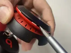 Используйте инструмент для поддевания, чтобы разделить крышку наушников.