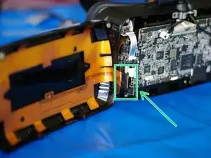 «Знаменитый» разъем лицевой панели находится внутри между платой и лицевой панелью. Я отметил приблизительное местоположение красным здесь, будьте осторожны при открытии, чтобы не тянуть сильно, так как люди утверждали, что он ломается легко, что делает трекинг головы вашего наушника бесполезным, если разъем оторвется. (Если он просто отключился, смотрите ниже, чтобы подключить его снова.)