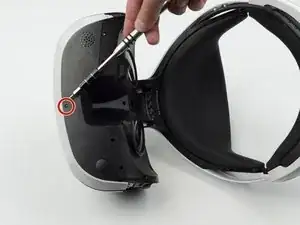Используя отвёртку PH #000, открутите винт 7 мм, расположенный снизу гарнитуры.
