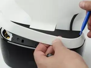 Используя пластиковый монтажный инструмент, аккуратно подденьте белую пластиковую панель с боковой стороны гарнитуры. Повторите для противоположной стороны.