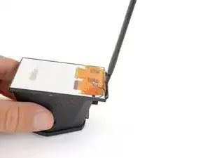 Вставьте плоский конец лопатки между краем рамки линзы ЖК-дисплея и внешней крышкой ЖК-дисплея.