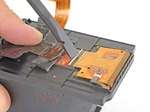 Подденьте ленту над разъёмом правой камеры достаточно, чтобы получить доступ к ZIF-разъёму камеры под ней.