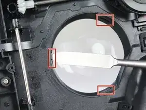 Снимите четыре заглушки винтов в углах с помощью металлической лопатки.