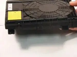 Для начала переверните устройство так, чтобы нижняя часть была направлена вверх. Есть 9 черных зажимов, которые крепят пластиковый корпус к корпусу устройства. Удалите эти зажимы из корпуса.