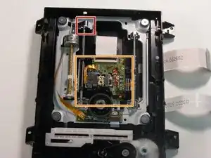 Отсоедините провод от линзы привода, подняв черный элемент и вытянув провод в указанной области.