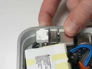 Пальцем надавите на разъём переменного тока, сдвигая его внутрь, в сторону блока питания.