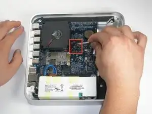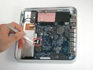 Снимите единственный винт T8 Torx, крепящий плату AirPort к логической плате.