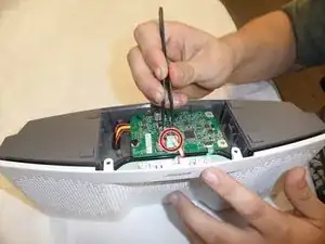 Замените старую логическую плату на новую. Поместите провода в отверстия для пайки и припаять на месте. Соберите SoundDock заново.