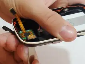 Отсоедините бронзовый шлейф SIM-карты от материнской платы пальцем.