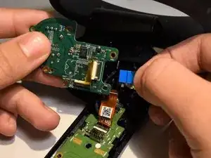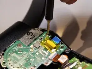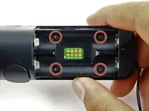 С помощью отвертки Phillips #00 удалите четыре винта длиной 4 мм, расположенные на плате джойстика под верхней половиной контроллера.