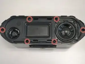 Используйте отвертку PH1, чтобы удалить шесть винтов 12 мм, которые находятся под каждой резинкой.