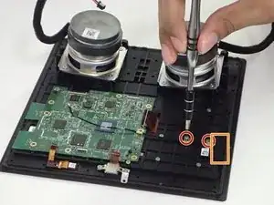 Уберите два винта Torx T5 1 мм, удерживающих провод, подключенный к материнской плате.