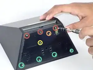 Чтобы собрать устройство обратно, следуйте этим инструкциям в обратном порядке. Убедитесь, что кольцо на чёрном проводе прикреплено между платой и винтом, а чёрная лента на конце также выровнена.
