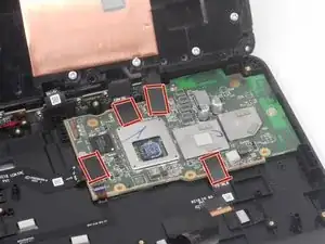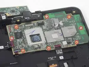 Используйте отвёртку Torx T6, чтобы вынуть восемь винтов 5,2 мм, которые крепят материнскую плату.