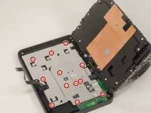 Используйте отвёртку Torx T6, чтобы вынуть двенадцать винтов 6 мм, которые закрепляют серебристый кронштейн.